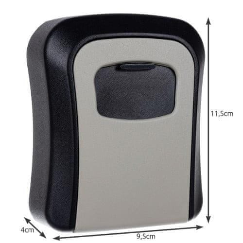 pričvršćivanje na zid bilo gdje.Zbog svoje male veličine kutija za pohranu je neupadljiva. Unutrašnjost mu je toliko prostrana da u njega čak možete smjestiti veliki svežanj ključeva. U njega također možete lako smjestiti magnetsku karticu, ključeve automobila ili druge važne sitnice.Njegova robusna konstrukcija i sustav šifriranja osiguravaju sigurnost pohranjenih predmeta.S čeličnom kombiniranom bravom s 4 znamenke možete postaviti do 10.000 različitih kodnih kombinacija.Metal Box se može koristiti na različitim lokacijama kao što su domovi, uredi, radionice, hoteli, sportski klubovi ili rent-a-car. Idealan je za ljude koji trebaju siguran način za pohranu ključeva ili drugih dragocjenosti, ali ipak žele kontrolirati pristup njima. Montaža kasete je vrlo jednostavna, vijci za zidnu montažu su uključeni.