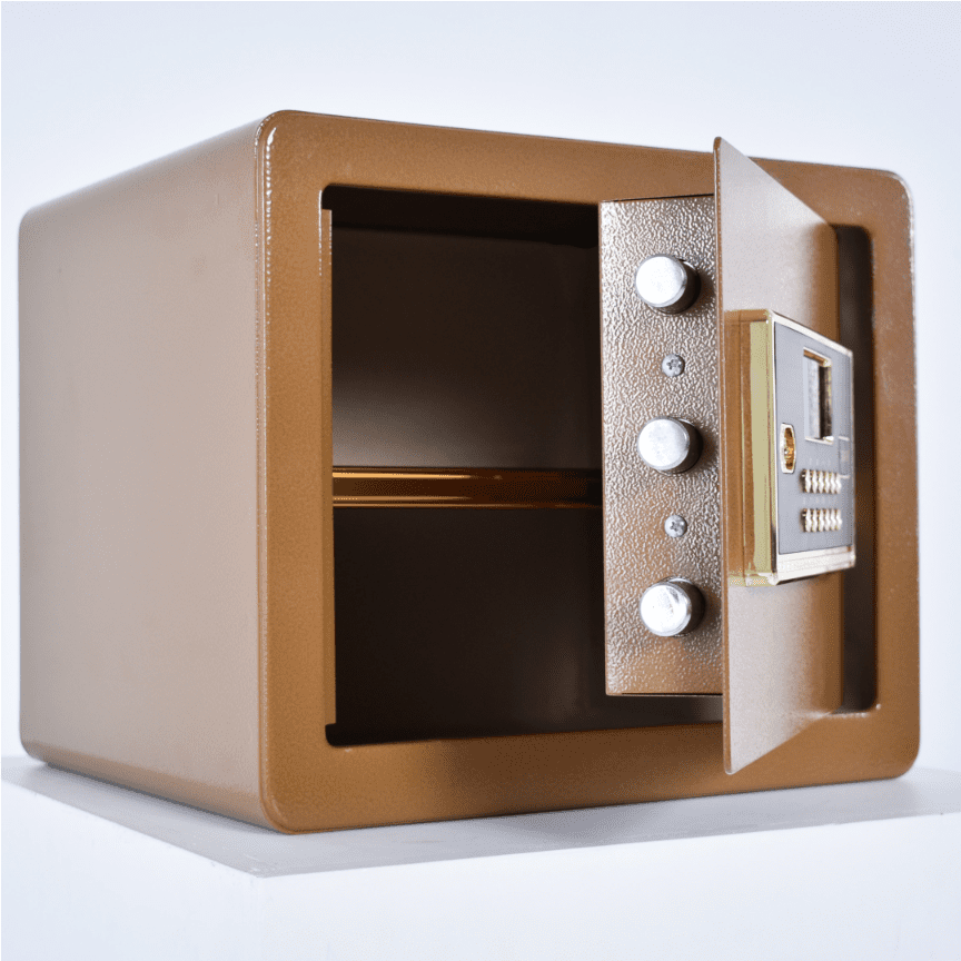 Nikcorp Oklopni kućni sef s elektroničkom bravom i ključem, 30x36x30 cm, čelični, smeđi, alarmni sustav, polica