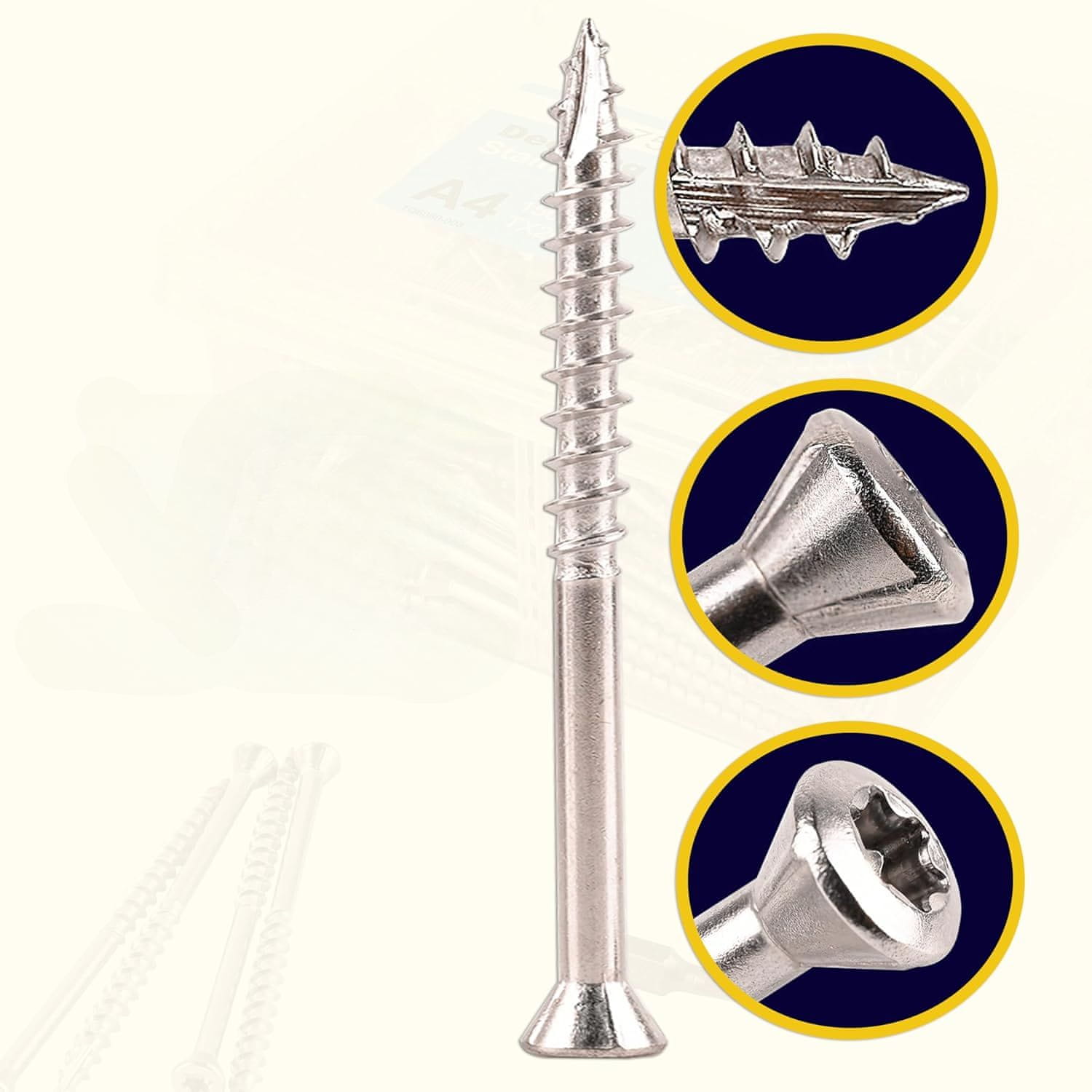 Nikcorp Set vijaka od nehrđajućeg čelika 250 kom, otporni na koroziju za drvo, vanjske konstrukcije i terase, Torx T20, 4,2x55 mm
