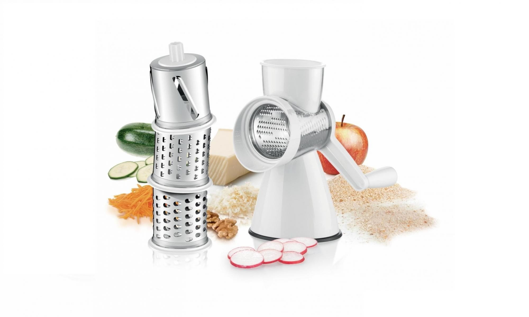 Mlin od nehrđajućeg čelika za mljevenje mrvica, oraha i sira. Rotacijska mehanička rešetka BANQUET CULINARIA izrađena je od nehrđajućeg čelika. Može se lako oprati, lako sastaviti i pričvrstiti na podlogu gumenim nastavkom.
