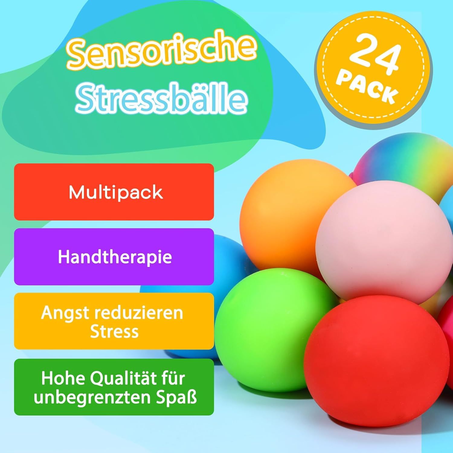 Nikcorp Senzorna antistres loptica, set 24 komada, igračka za ublažavanje stresa i rehabilitaciju ruku, TPR materijal, promjer 6 cm