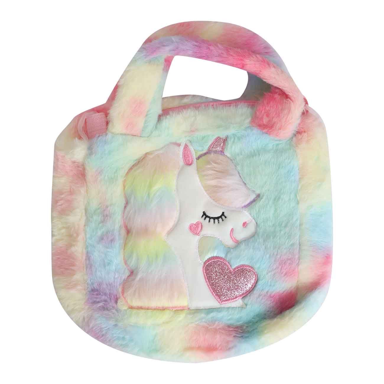 Ova prekrasna torbica od mekanog pliša savršeno spaja praktičnost i slatki dizajn. Uzorak jednoroga sa srcem u nježno pastelnim bojama čini je idealnom za sve generacije. Dolazi s ručkom i odvojivim remenom za rame, a zatvara se sigurnim zipperom.