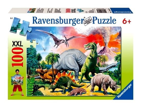Ravensburger slagalica „Dinosauri“ sa 100 XXL dijelova prikazuje popularne slike dinosaura iz povijesti. Veliki dijelovi čine je idealnom za djecu od 6 godina i više, pomažući u razvoju motoričkih sposobnosti. Izrađena je od visokokvalitetnog kartona s lanenim tiskom protiv odsjaja.