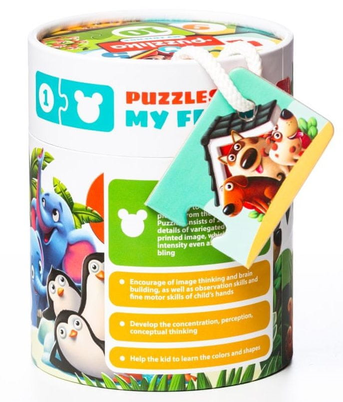 Možete li izbrojiti koliko je prijatelja na slici? U okviru ćete pronaći 20 velikih čvrstih zagonetki koje čine 10 zasebnih parova zagonetki koje su tematski povezane. Na jednoj polovici karata određeni broj prikazuje pojedine životinje, a na drugoj polovici slagalice njihov broj. Cilj je napraviti prave kombinacije i prikupiti što više parova. Igračka pomaže djeci da razviju svoje vještine. Igra pomaže djeci da razviju svoje osnovne vještine.