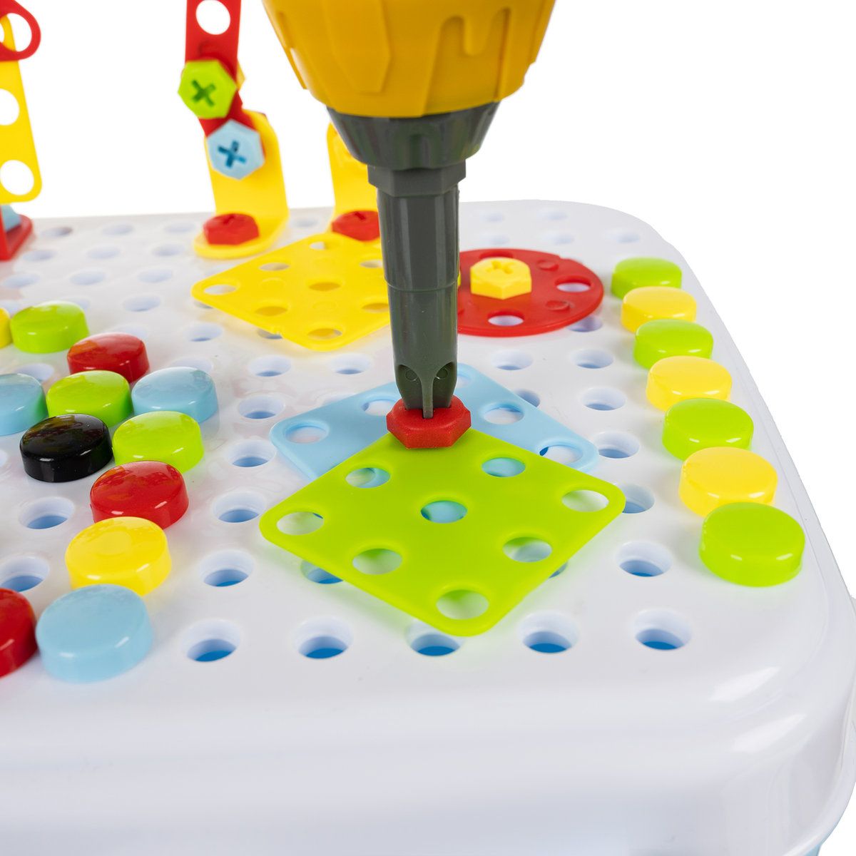 Odvijač radi na baterije, omogućava uvrtanje i odvrtanje vijaka! Svakako će razveseliti svako dijete i potaknuti ga na igru. Kreativni mozaik omogućit će vašem djetetu stvaranje mnogo različitih slika, posebno za ljubitelje DIY. Žive i kontrastne boje privlače djetetovu pozornost i povećavaju interes za igračku.
