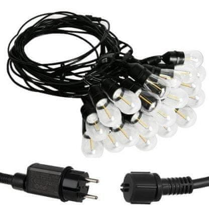 - SPECIFIKACIJA – žarulje: E27; trajni sjaj; razmak između kuglica: 50 cm; bakrene žice; vodootporan: IP44; mogućnost kombiniranja; ulazni napon: 220–240V; izlazni napon: 24V; 20 žarulja; boja svjetla: topla bijela; ukupna dužina: 1160cm; duljina kabela sa lampama: 1000 cm; promjer lukovice: 4 cm; težina: 2,376 kg.