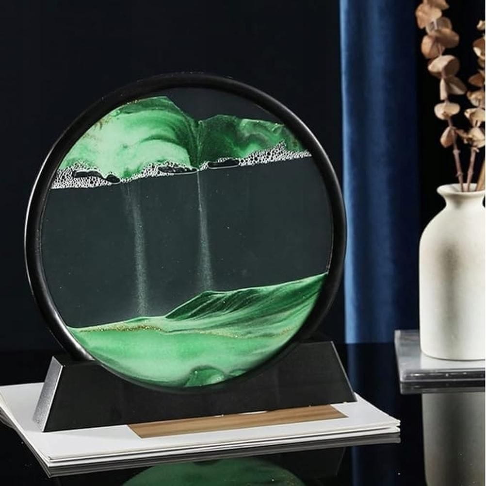 Dodajte dašak elegancije i opuštenosti u svoj prostor s 3D slikom u pijesku na staklu za stol! Ovaj jedinstveni ukras stvara hipnotičke uzorke dok pijesak lagano pada, tvoreći jedinstvene krajolike poput planina, dina i oceana.