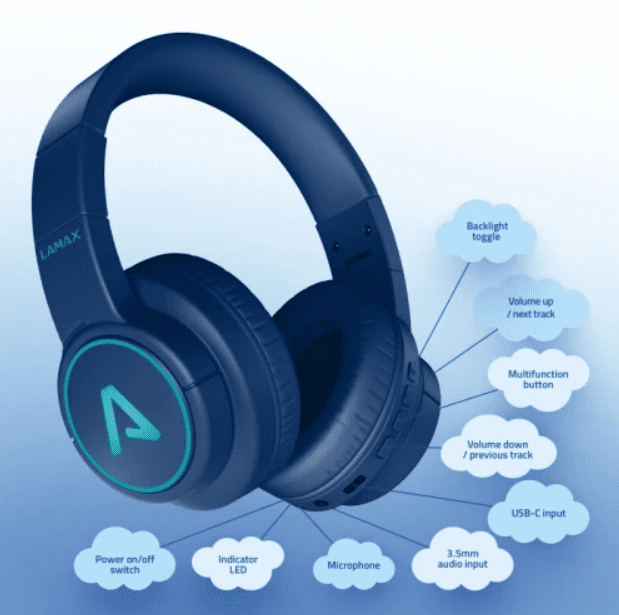 LAMAX GlowKid1 dječje bežične slušalice, LED osvjetljenje, 85 dB, plave (8595724902928)