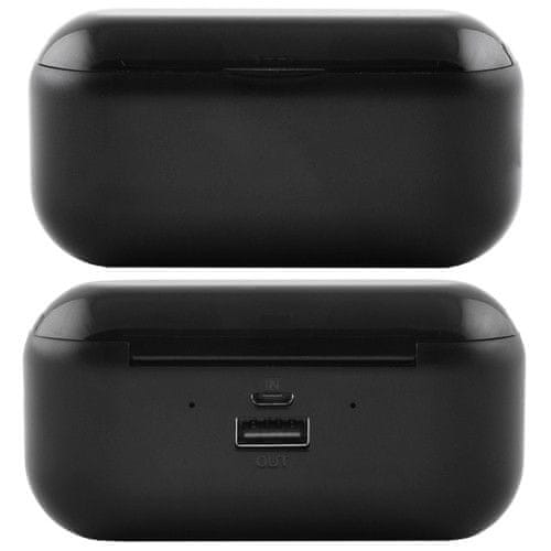 Bežične slušalice ergonomski su dizajnirane i povezuju se s vašim pametnim telefonom putem Bluetootha, omogućujući vam slušanje omiljene glazbe i telefoniranje. Slušalice imaju domet od 10m i pune se u kratkom vremenu u svojoj bazi. Imaju elegantnu kutiju za punjenje s LED zaslonom koji pokazuje postotak napunjenosti baterije, a svaka slušalica također ima LED indikator. Zahvaljujući prozirnom poklopcu, nema potrebe otvarati kućište da biste provjerili razinu baterije.