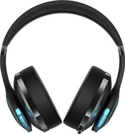 Igraće slušalice s poboljšanim 40 mm titanskim drajverima i atributima posebno za FPS igre: – latencija od 45 ms, pozicioniranje zvuka, H+ efekti, ulazi: BT/AUX, podesiva kontrola glasnoće, uvlačivi mikrofon, Bluetooth V5.0, kompatibilnost: Android i iOS, cyber rgb pozadinsko osvjetljenje, trajanje baterije do 40 sati.