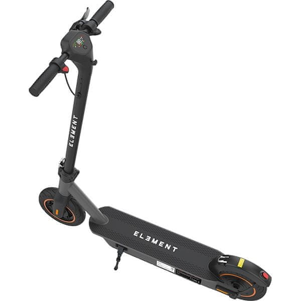 U MAX skuteru smo također unaprijedili kočioni sustav ugradnjom bubanj kočnice sprijeda i elektroničke kočnice s rekuperacijom straga. U praksi to znači kontrolirano , učinkovito i ugodnije kočenje , koje ujedno puni bateriju . Veliki, jasan i zaslon u boji pruža sve važne informacije koje bi korisnika mogle zanimati. Zbog spomenutih značajki, ELEMENT MAX je izvrstan izbor čak i za zahtjevne korisnike električnih skutera koji od njega očekuju nešto više.