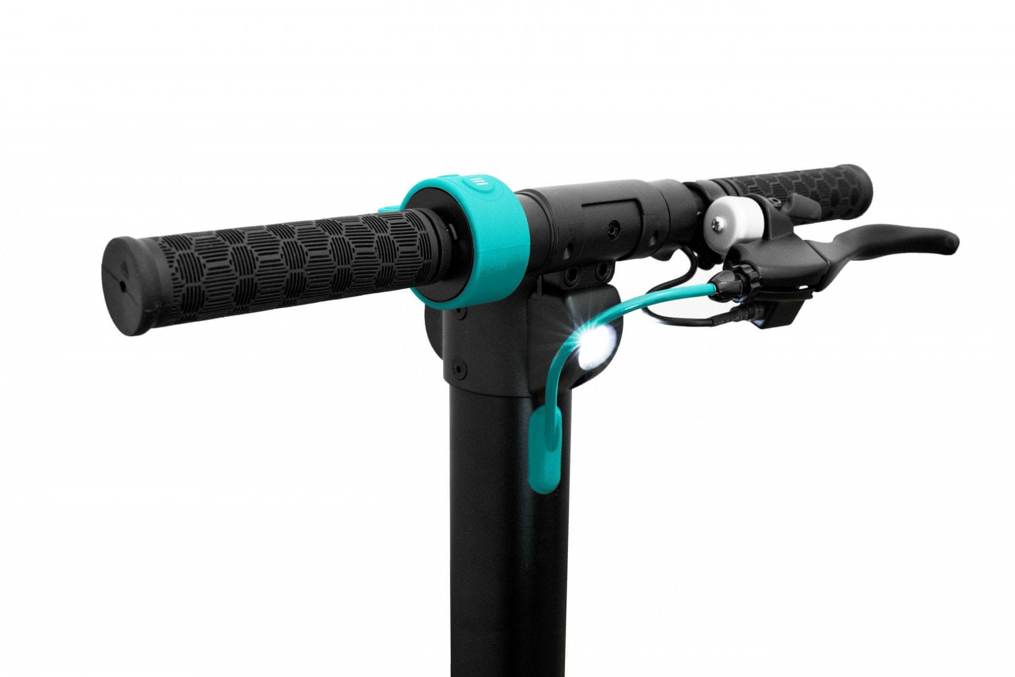 Računalo sadrži četiri LED lampice koje pokazuju razinu baterije i trenutnu brzinu vožnje. Jednim klikom na gumb možete upravljati osvjetljenjem, postaviti skuter na ECO način rada ili ga uključiti ili isključiti.