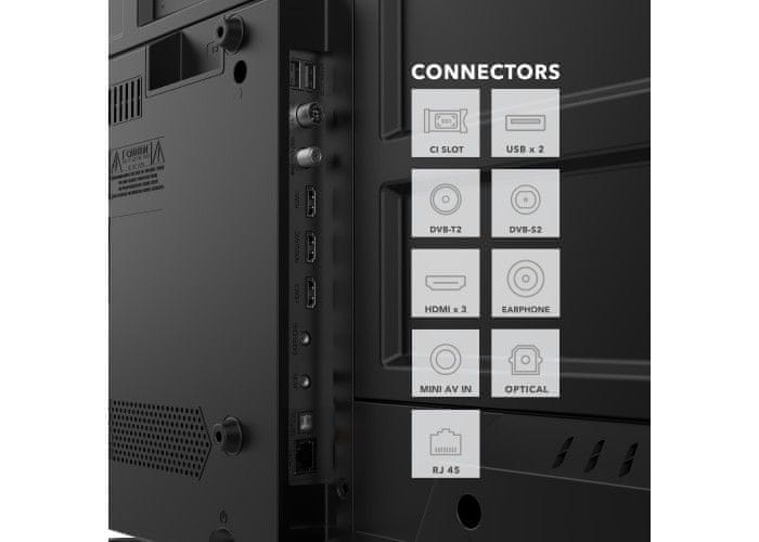 Dječja sigurnosna brava, timer za isključivanje, teletekst (1000 stranica), EPG (7 dana)