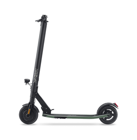 Opremljen je električnom kočnicom na prednjem kotačububnjastom kočnicom na stražnjem kotaču, što osigurava pouzdano i sigurno zaustavljanje. Prednji ovjes osigurava glatku vožnju po neravnim površinama, dok izdržljive gume od 20,3 cm (8") smanjuju rizik od probijanja i zahtijevaju minimalno održavanje. LCD zaslon na upravljaču pruža sve potrebne informacije u stvarnom vremenu: brzinu, stanje baterije i odabrani način vožnje. S IPX5 zaštitom, romobil je otporan na prskanje vode, što vam omogućuje bezbrižnu vožnju čak i po laganoj kiši.