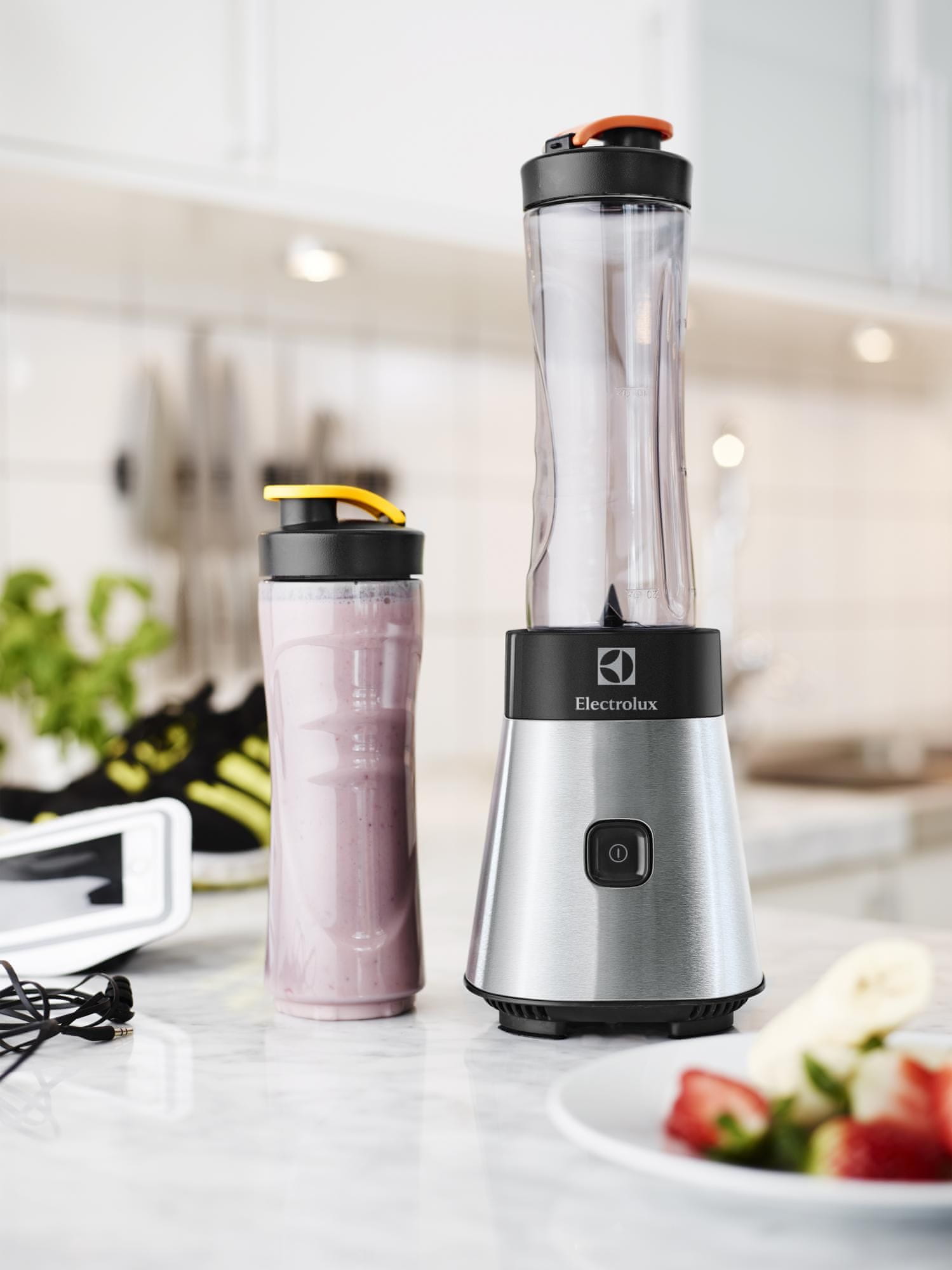 Electrolux blender ESB2500 ima posudu za miješanje, koja je istovremeno praktična bočica, pa ćete smoothie moći ponijeti sa sobom na put. Blender s lakoćom miješa sve vaše omiljene svježe sastojke – i to direktno u bočici volumena 0,6 l.