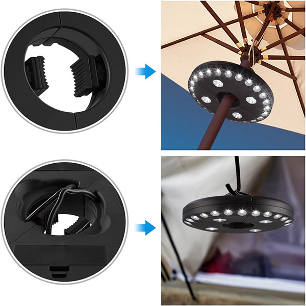 Za razliku od standardnih svjetala za kišobrane, BRELLAGLO radi gdje god vam treba. Pričvrstite ga na kišobran za osvjetljenje terase ili koristite ugrađene kukice za vješanje—savršeno za kampiranje i avanture na otvorenom.
