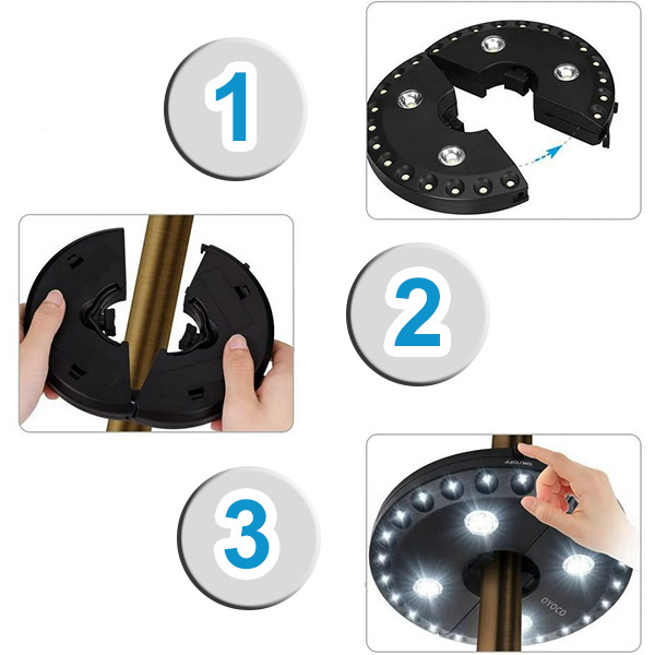 HOME & MARKER® LED lampa za suncobran, vanjska svjetiljka, 3 načina osvjetljenja | BRELLAGLO