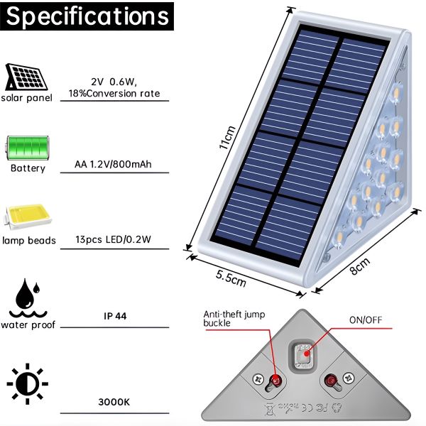 Uživajte u 6–8 sati tople bijele svjetlosti nakon samo 4–5 sati punjenja. Savršeno za poboljšanje sigurnosti i ambijenta u vašem vrtu ili na stazama.