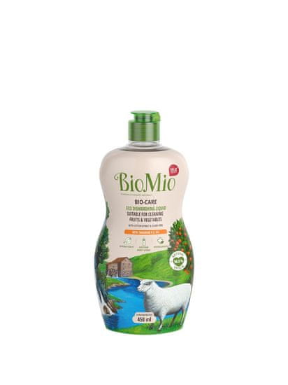 Biomio deterdžent za pranje posuđa je 98,8% prirodnog podrijetla. Pogodan je za pranje dječjeg prljavog posuđa i za pranje voća i povrća. Omogućuje ekonomičnu potrošnju i opremljen je ugodnim mirisom mandarine.