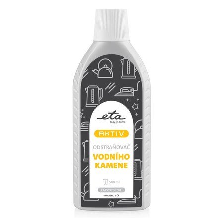 Sredstvo za uklanjanje kamenca ETA Aktiv idealno je za brzo uklanjanje kamenca s kuhala za vodu i glačala. Redovitom upotrebom također produžujete vijek trajanja uređaja i time štedite okoliš i svoj novčanik. Kapacitet boce je 0,5 litara.