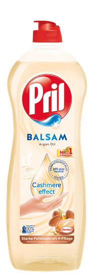 - Formula deterdženta Pril Balsam Argan Oil odgovara pH vrijednosti ljudske kože. Dakle, proizvod je izuzetno blag, posebno kada se koristi izravno pod mlazom vode.