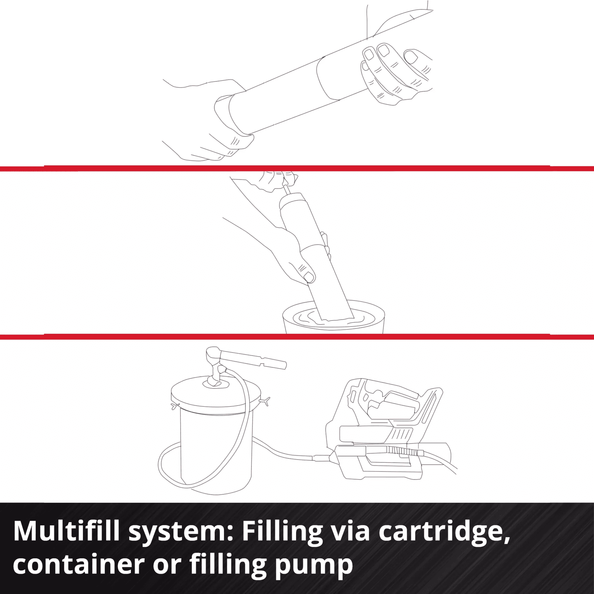 - Multifill sustav: prilagodljivo punjenje kartušom, izravno iz posude ili pomoću pumpe.