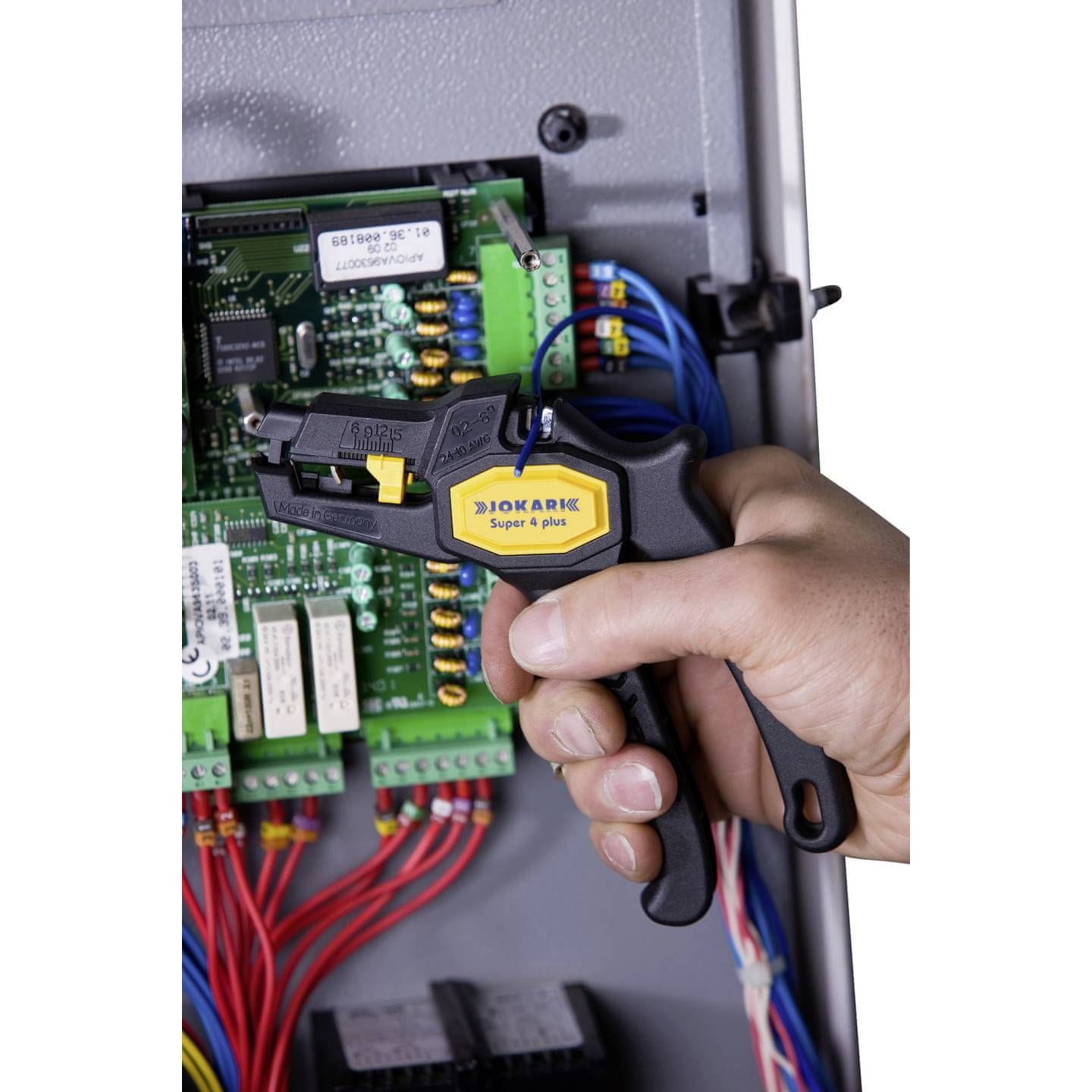 Jokari Super 4 Plus 20050 je automatski odstranjivač izolacije za žice promjera 0,2–6 mm² (AWG 24–10). Omogućuje precizno skidanje izolacije do 2,5 mm, duljine 6–15 mm. Ergonomski ručak i lagano kućište od ojačanog poliamida omogućuju brzo i sigurno rukovanje, čak i na teško dostupnim mjestima.