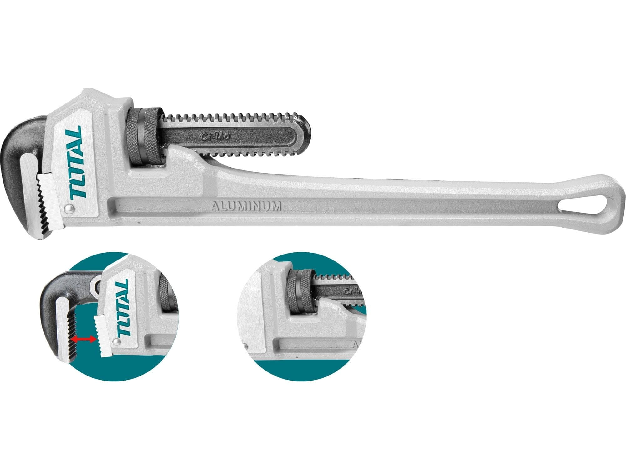 Total THTAL17146 Ključ, duljina 350 mm/50 mm, industrijski Karakteristike: Veličina ključa je 350 mm. Maksimalni promjer stezanja 50 mm. Aluminijska ručka za jednostavnu upotrebu. Pokretna čeljust kovana u kalupu od visokokvalitetnog ugljičnog čelika.