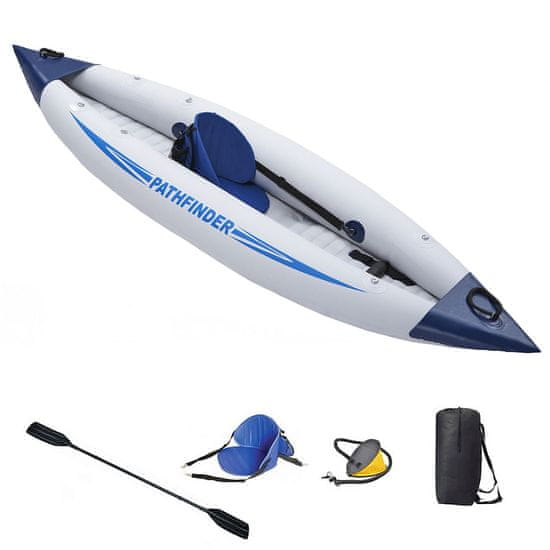 Siti ste izležavanja na zračnom madracu ili vrtnje u kolutu na napuhavanje? Želite nešto što uključuje više avanturizma? Ako niste tip za veslanje na dasci, kajak na napuhavanje je pravi izbor za vas! Kajak Pathfinder jednosjed za 1 osobu, je okretni, priručni mali kajak na napuhavanje za univerzalnu uporabu. Možete veslati na moru, u rijeci ili jezeru.