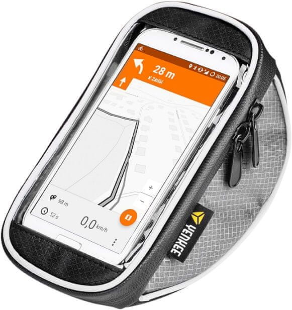 Torbica za mobitel za trčanje – tkanina, stavlja se na rame, izrez za slušalice, odvodi višak vlage, džep na patentni zatvarač.