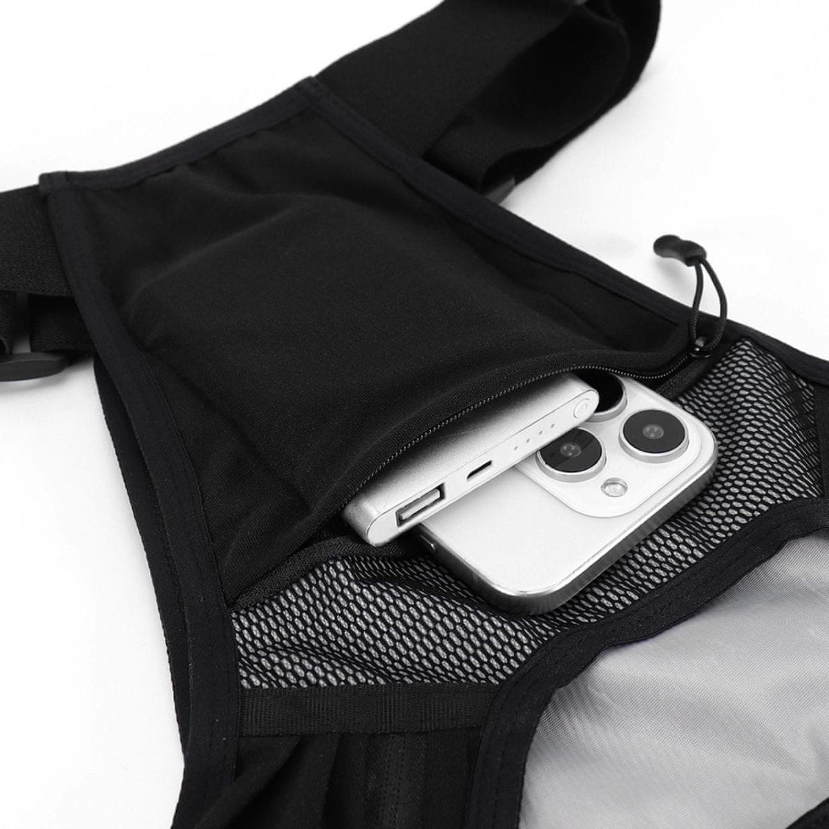 Zahvaljujući podesivom remenu na dnu, prsluk uvijek ostaje na mjestu bez obzira na intenzitet kretanja. Možete ga savršeno prilagoditi svom obliku tijela, što povećava udobnost i eliminira rizik od pomicanja prsluka tijekom trčanja.Funkcionalni džepovi za vaše osnovne potrepštine