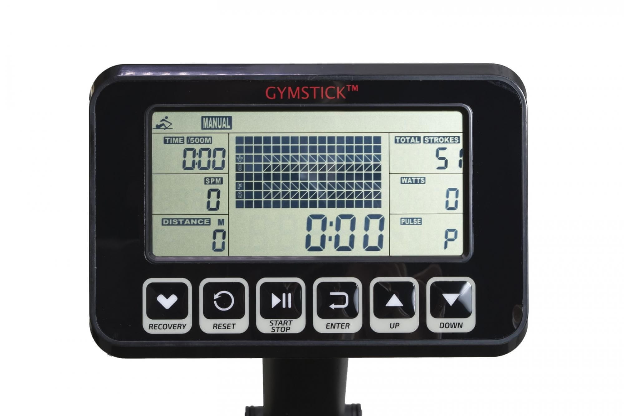 Gymstick kardio naprava za veslanje H2O Rower nudi odlično iskustvo veslanja jer je otpor zapravo voda. Podstavljeno sjedalo, neklizajući nasloni za noge i ergonomske ručke će se pobrinuti za optimalno iskustvo. Na napravi se nalaze kotači pomoću kojih se uređaj može složiti u uspravni položaj. Značajke računala: vrijeme, veslaj/minuta, ukupni veslaji, udaljenost, kalorije.