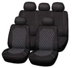 Komplet crno-sivih presvlaka za sjedala. Dizajn je inspiriran paučinom. Navlake za sjedala i unutrašnjost automobila daju luksuzan, ali minimalistički izgled. Unutrašnjosti daje jedinstvenu atmosferu i izgled, a ujedno štiti presvlake tvorničkih sjedala od habanja i prljavštine te prekriva sve nedostatke i mrlje. Navlake za sjedala kompatibilne su s gotovo svim automobilima, koji imaju dva sjedala sprijeda i 3 sjedala straga. Navlake za sjedala možete postaviti i na sjedalo opremljeno bočnim zračnim jastukom, jer je ova presvlaka namijenjena bočnom zračnom jastuku. Izrađen je u potpunosti od poliestera.