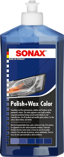 Politura u boji Sonax je ekološki prihvatljiva i ne sadrži otapala. Sadrži prirodne Carnauba voskove. Izrađena je na vodenoj osnovi. Primjerna je za upotreba s običnim i metalik lakovima.