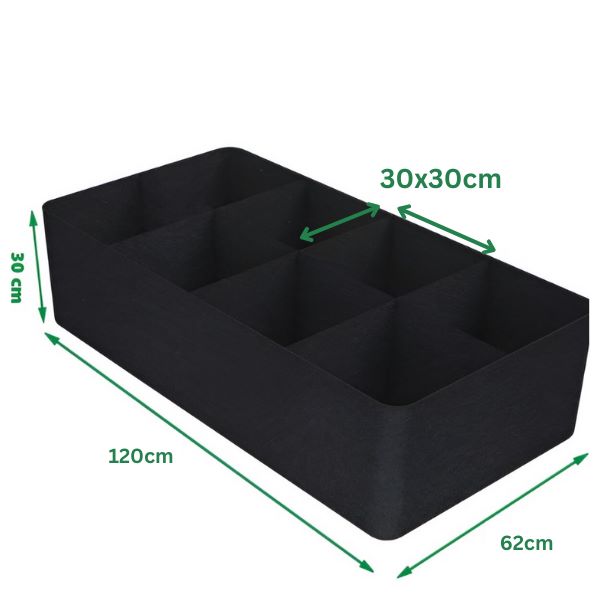 Ova podignuta vrtna gredica od tkanine dolazi s dizajnom koji sadrži 8 odjeljaka, dimenzija 120 × 62 cm s visinom od 30 cm. Savršena je za uzgoj raznih biljaka, cvijeća i povrća s dovoljnim prostorom za svaku od njih!