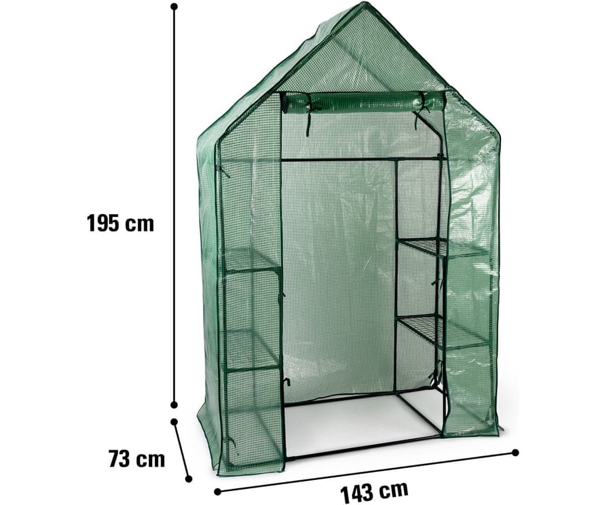 S veličinom od 143 × 73 × 195 cm i policom koja ima 3 razine s obje strane staklenika, imat ćete dovoljno mjesta za sve vaše omiljeno cvijeće i biljke.