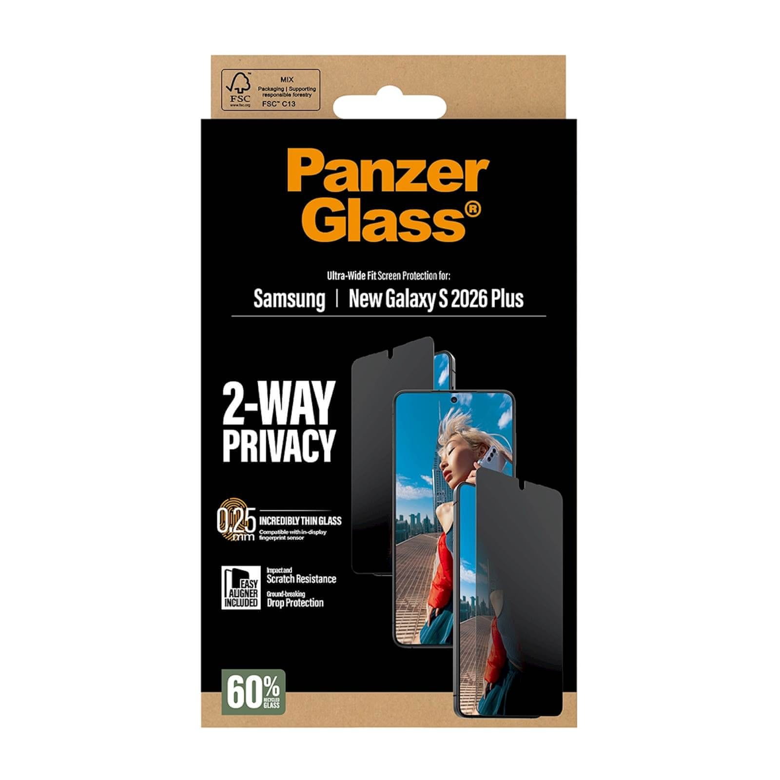Zaštitno steklo PanzerGlass™ Galaxy S26+ Privacy UWF štiti ekran i vašu privatnost pomoću filtera za privatnost.