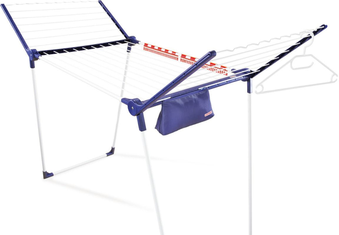 Bočni krakovi su primjereni za vješanje dužih komada odjeće. Sušilo je dizajnirano na način da je otporno na različite vremenske uvjete. Osim toga u paketu dobijete i 20 metara površine za sušenje. Napravljen je od metala i plastike.
