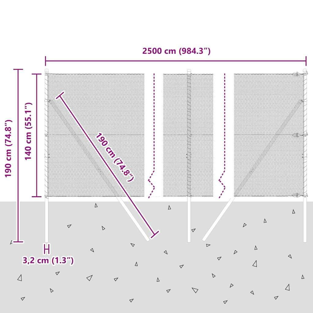 • Sveukupne dimenzije: 2500 × 3,2 × 140 cm (D x Š x V)