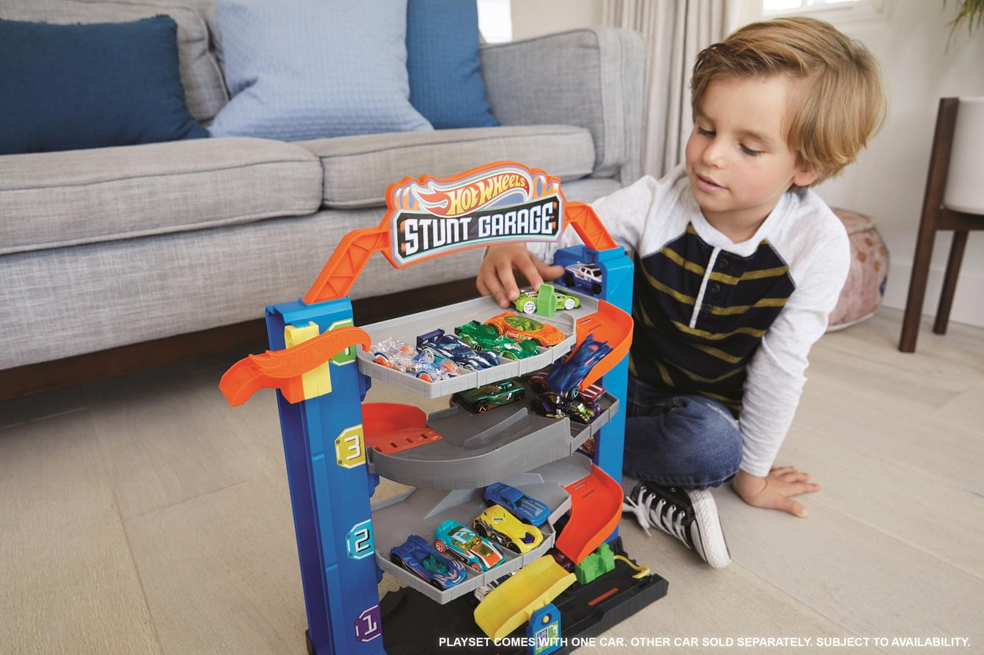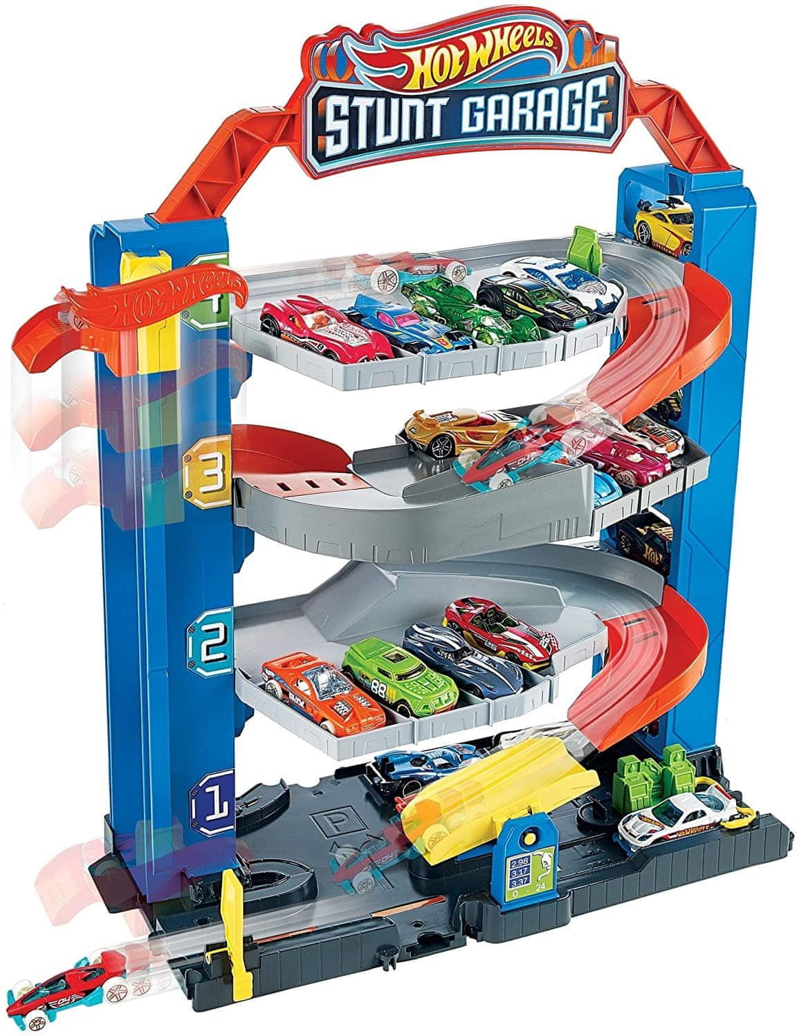 Utrka s vašim omiljenim engleskim Hot Wheels je beskrajna, ali kad dođe vrijeme za kraj, parkirajte automobile u ovoj sjajnoj garaži! Nudi parkirna mjesta za više od 20 automobila. Ako ne nađete parkirno mjesto na prvom katu, skočite pogledati na drugi. S dizalom odvedite auto do vrha.