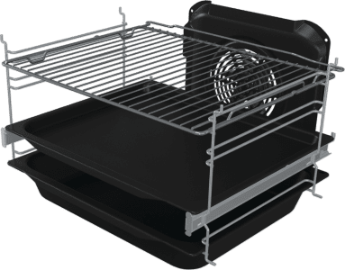 | Oprema | Vodilice posude za pečenje: jednorazinske izvlačne vodilice s djelomičnim izvlačenjem Set za ražnjiće: ne Plehovi za pečenje: 1 duboki emajlirani pleh, 1 plitki emajlirani pleh Mrežna rešetka: 1 komad Napomena! Priključni kabel nije dio isporuke. |