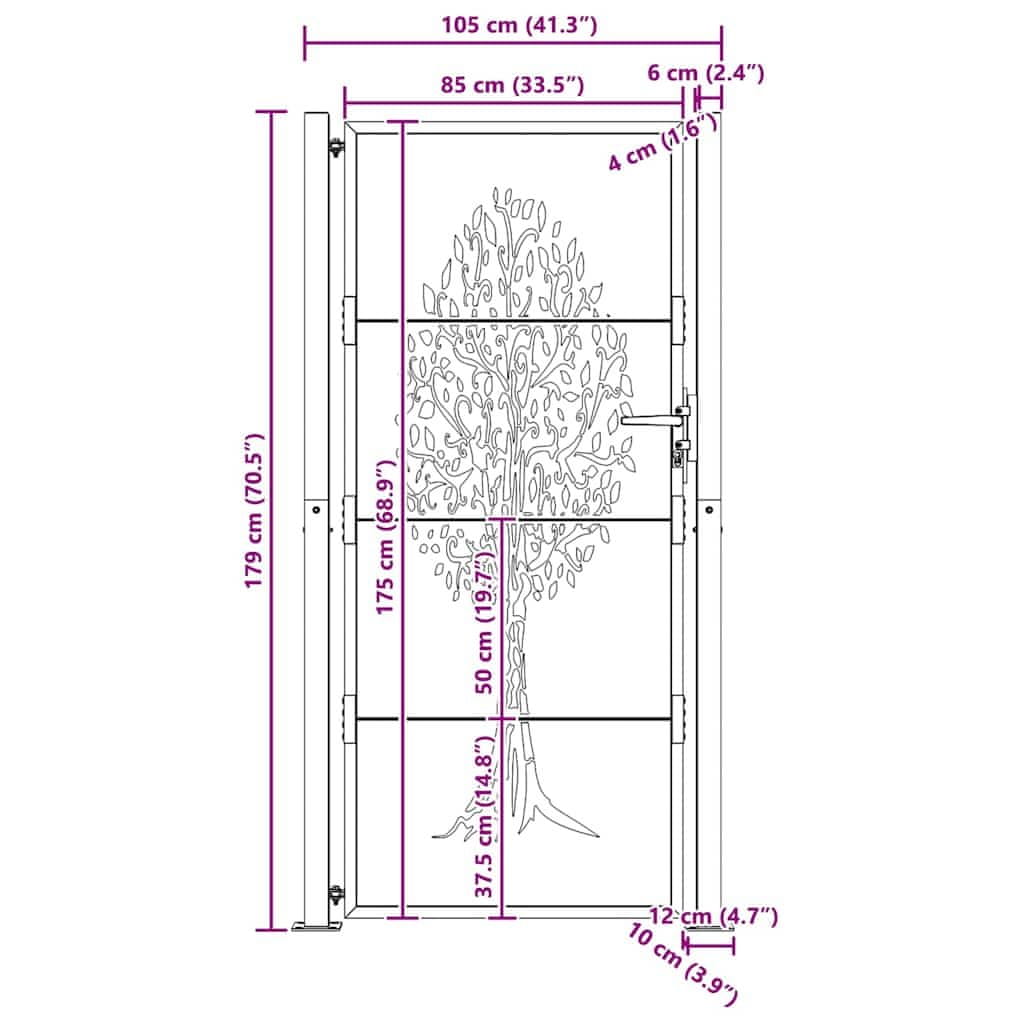 Vidaxl Vrtna vrata 100x175 cm Corten čelik Dizajn stabla