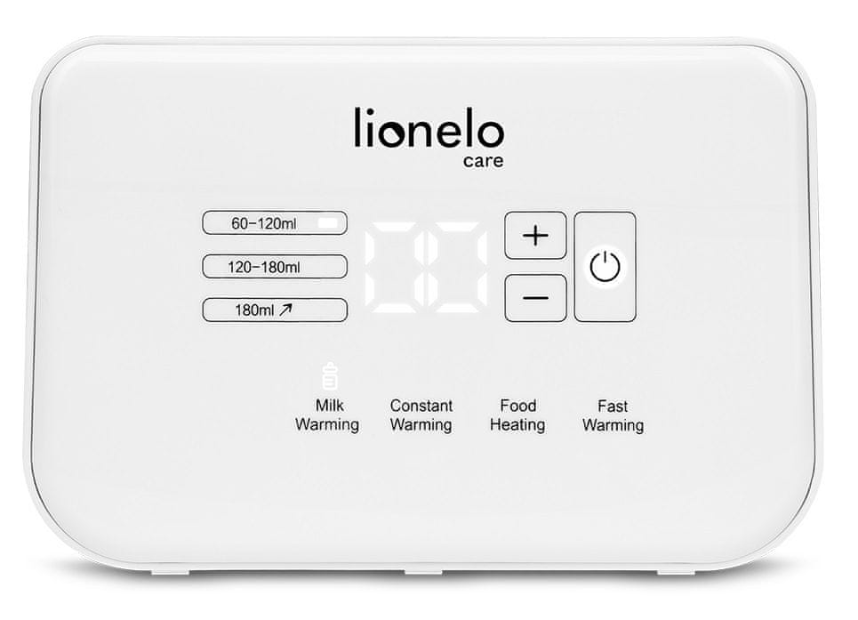 Dvostruki 6 u 1 grijač za bočice s funkcijom sterilizacije, marke Lionelo. Održava temperaturu hrane do 24 sata, a zahvaljujući jednostavnoj upravljačkoj ploči nećete imati problema s uređajem.