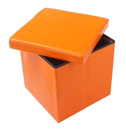 Osobna kutija u narančastoj boji je korisna za pohranu ili kao tabure. Kutija je pogodna za manje stanove, jer ne zauzima puno prostora sa svojom dvojnom uporabom i praktičnošću. Izrađena je od eko kože i ima dimenzije 38 × 38 × 38 cm.