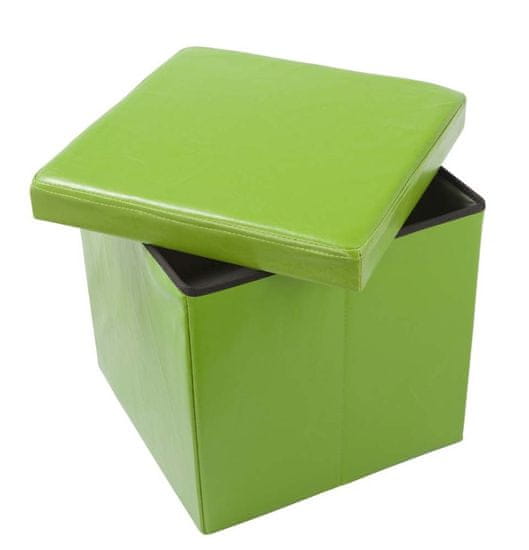 Osobna kutija u zelenoj boji j e korisna za pohranu ili kao tabure. Kutija je pogodna za manje stanove, jer ne zauzima puno prostora sa svojom dvojnom uporabom i praktičnošću. Izrađena je od eko kože i ima dimenzije 38 × 38 × 38 cm.