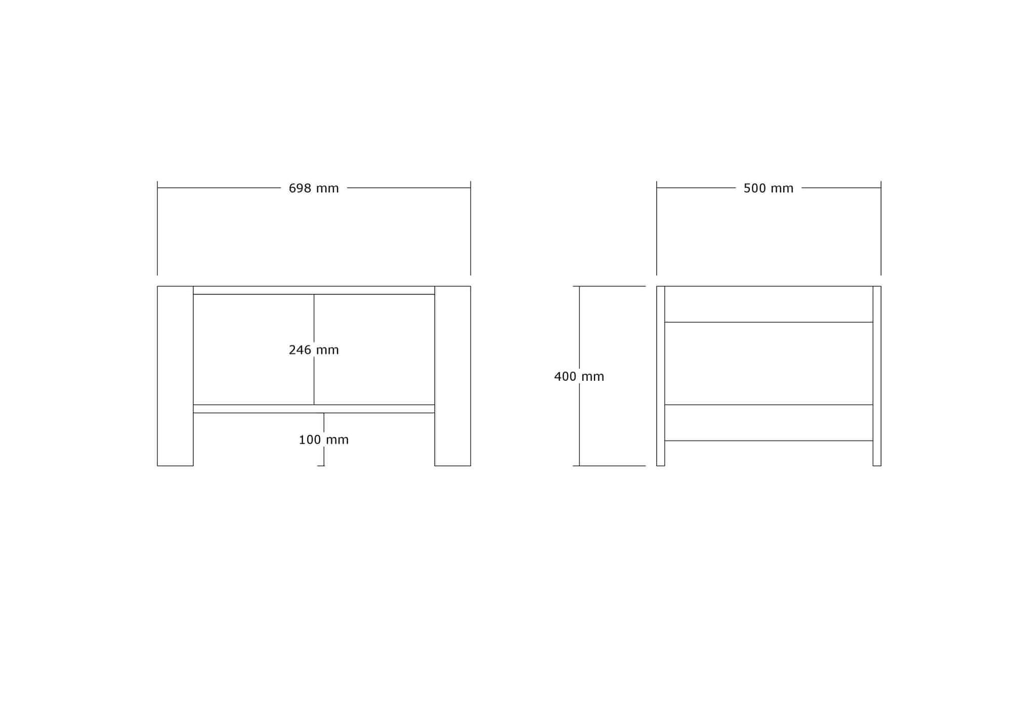 100% čestica obložena melaminom Debljina: 18 mm Širina: 69,8 cm Visina: 40 cm dubina: 50 cm Visina nogu: 10 cm, broj paketa: 1