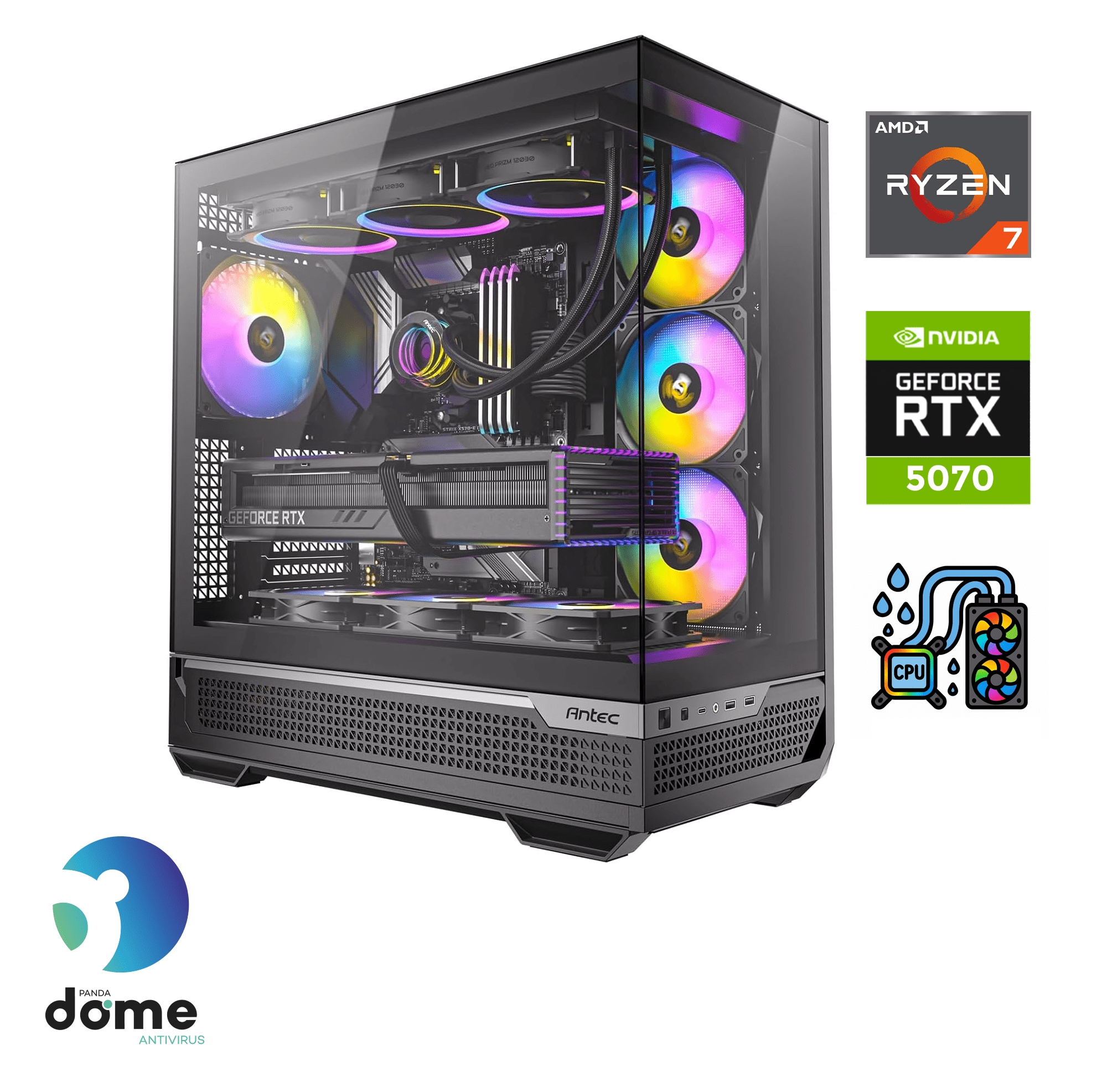 Gamer Extreme gaming stolno računalo pruža vrhunske performanse i iskustvo tijekom obavljanja svakodnevnih zadataka i igranja igrica. Pokreće ga snažni AMD Ryzen™ 7 9700X procesor, a diskretna grafička kartica Nvidia GeForce RTX 5070 osigurava izvrstan prikaz multimedije. 32 GB RAM-a u kombinaciji s munjevito brzim SSD-om od 2 TB osigurava izvrsne performanse sustava i odziv. Uključena je 1-godišnja licenca za antivirusni softver Panda Dome. Računalo nema instaliran operativni sustav.