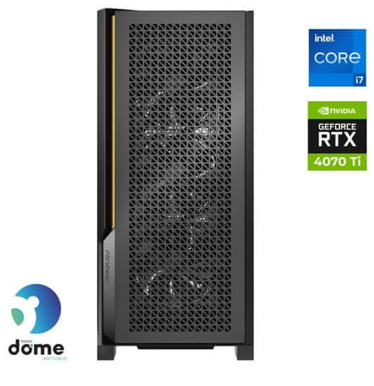 i7–12700KF/16GB/SSD1TB/RTX4070Ti/FreeDOS Stolno računalo Gamer Elite pokreće snažan Intel® Core™ i7–12700KF procesor, a diskretna NVIDIA GeForce RTX 4070 Ti grafička kartica osigurat će besprijekorno iskustvo igranja . Munjevito brz SSD disk kapaciteta 1 TB, u kombinaciji s radnom memorijom od 16 GB, pobrinut će se za izniman odziv i multitasking. Uključena je jednogodišnja licenca za Panda Dome Antivirus softver.