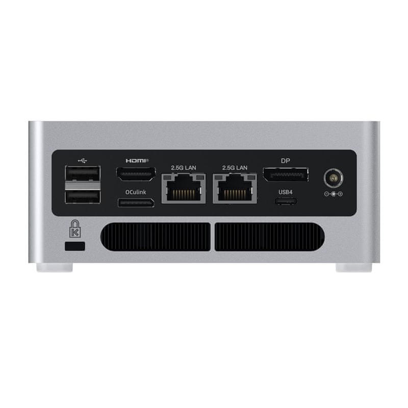 Na stražnjoj strani kućišta nalazi se USB4 priključak koji podržava PD napajanje (65–100 W), prijenos podataka do 40 Gbps, kao i video izlaz. Tu su i dva USB 3.2 Gen2 priključka, dva USB 2.0, HDMI 2.0, DisplayPort 1.4, OCulink, 3,5 mm kombinirani priključak i 2 RJ45 2.5G Ethernet priključka. To je bogat skup priključaka koji vam omogućuje spajanje gotovo bilo koje periferne opreme, monitora ili dodatne opreme – bez upotrebe dodatnih adaptera.