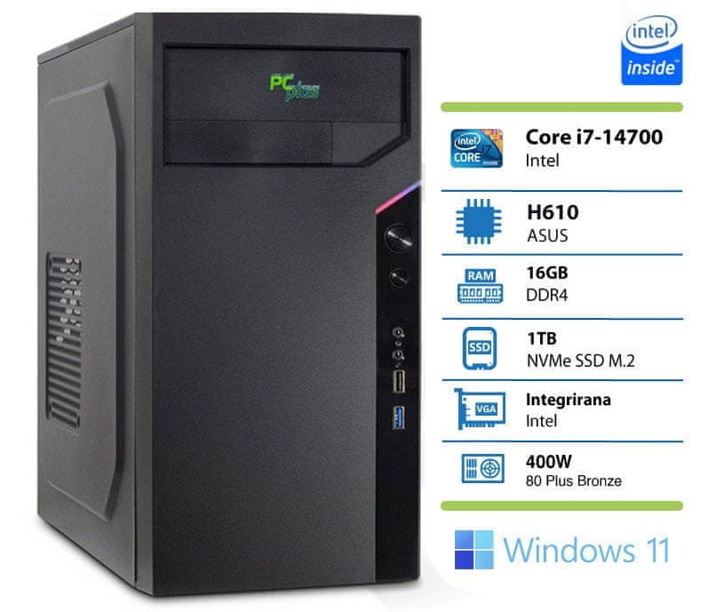 PCplus e-office stolno računalo, i7-14700, 16GB, SSD1TB, W11P (145704)